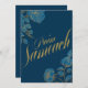 Vacker blå blommigt och guld Purim Sameach-kort för missloach manot.