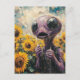 Purple Alien in a Sunflower Field Vykort