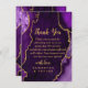Make a bold and elegant statement of gratitude with this purple and gold agate marble thank you design. Featuring rich jewel tones, organic stone textures, and shimmering gold accents, this design is perfect for couples who want to extend the luxury of their celebration beyond the wedding day. Deep amethyst hues paired with metallic gold detailing create a dramatic yet refined aesthetic, ideal for formal, modern, or glamorous fall and winter weddings. Fully customizable to reflect your names and message, this agate-inspired thank you card adds timeless sophistication to your post-wedding correspondence.