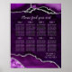 Welcome guests in style with this purple and silver agate marble wedding seating chart, designed to make a striking statement at your reception. Rich jewel-toned purples, organic stone-inspired patterns, and luminous silver accents create a refined and dramatic display ideal for fall or winter weddings. The deep amethyst palette paired with metallic silver detailing complements elegant, modern, and glamorous celebrations while enhancing your décor. This seating chart is formatted for 8 tables and can be fully customized to accommodate additional tables, guest counts, and layout preferences, ensuring a seamless fit for your wedding day.