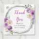 Beautiful birthday party favor tag with a purple and silver faux glitter frame with floral flower arrangements. The words can be changed to suit your own details or requirements