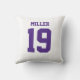 Add a name and number(s) to personalize this custom double-sided purple and white sports jersey inspired accent pillow. It is an excellent gift for a sports fan or athlete. The options to change the color and font sizes are available.