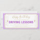 Purple Birthday Driving Lessons Gift Voucher Card Inbjudningar