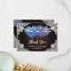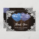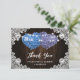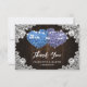 Thank your guest for sharing in your special day with this romantic purple and blue rustic floral wedding thank you card featuring cute floral hearts, string lights and elegant white floral lace on a barn wood background.