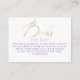 Elegant modern boy baby shower request card "Books for Baby" in purple, gold and white colors