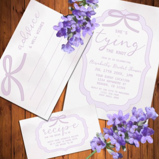 Purple Bow Watercolor Bridal Shower Inbjudningar