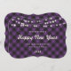 Simple, yet elegant purple buffalo plaid New Year card featuring string lights on a purple buffalo plaid background. Easily personalize online.