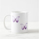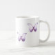 two purple butterflies on each side of a classic mug.