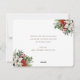 Elegant purple photo Christian Christmas card featuring a single photo adorned with gold holly and berries on the front and a watercolor painting of winter botanicals including white poinsettia, holly with red berries, white flowers and greenery.