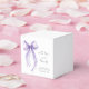 Chic bridal shower thank you party favor boxes featuring an elegant purple coquette bow watercolor, "with love and thanks" showcased in a stylish script, and the name of the bride and shower date in simple modern lettering.