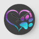 Purple Cyan Dog paw Print Heart Rund Klocka