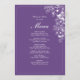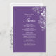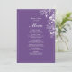 Elevate your reception table décor with this elegant purple floral wedding menu card featuring delicate white flower line art, refined script typography, and a modern minimalist layout. Perfect for romantic, spring, or formal celebrations, this menu coordinates with the full Bianca & Maxim wedding suite. The back includes a matching floral frame for additional details or notes. Ideal for weddings, rehearsal dinners, or special events.