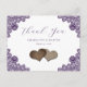Purple Floral Lace Burlap Hearts Wedding Thank You Vykort