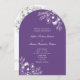 This elegant arched wedding invitation features a modern purple background paired with delicate white floral line art and a classic serif script. The design includes a full photo-free layout on the front with your ceremony details, plus a matching back with a QR code for RSVP and a wedding website link for easy guest access.
