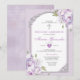 Purple Floral Silver Cross First Holy Communion Inbjudningar