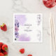 Elegant purple floral wedding napkins featuring soft watercolor flowers in lavender, blush, and white, paired with delicate botanical line art for a romantic and refined look. The airy white background and floral side border create a graceful design that is perfect for wedding receptions, cake tables, cocktail bars, dessert displays, and bridal celebrations. A beautiful choice for couples creating a coordinated floral wedding décor and stationery suite.