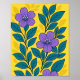 Purple Flowers & Teal Leaves on Yellow Background Poster