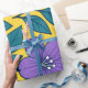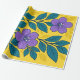 Purple Flowers & Teal Leaves on Yellow Background Presentpapper