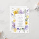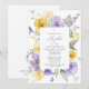 Invite friends and family in style and set the tone for your special day with this elegant baptism invitation. Design features purple and yellow watercolor flowers and greenery on white background.