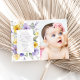 Invite friends and family in style and set the tone for your special day with this elegant first holy communion invitation. Design features purple and yellow watercolor flowers and greenery on white background.