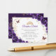 Purple gold and white floral Quinceanera reception details enclosure cards. Features, script font, gold butterflies, watercolor roses and tiara. Perfect for an elegant princess style glam celebration. Personalize with your own details.