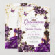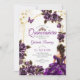 Purple Golden Tiara Roses Butterfly Quinceañera Inbjudningar