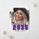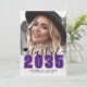 Classic Modern Graduation Announcement. The front features a full-page photo with a white gradient at the bottom that fades seamlessly into the image. Over the gradient, "2026" appears in a bold purple classic school-style font. Just above it, "Class of" is written in elegant black script. To the left of the year is a small, customizable graduation cap icon. Below the year, the graduate's name and school name are prominently displayed. All colors can be customized to match school colors or personal preferences.