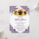 Rustic purple and sunflower bridal shower invitation featuring sunflower flowers, string lights and delicate floral lace. Matching items available to complement this elegant purple floral bridal shower invitation.
