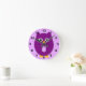 This owl design wall clock is a timekeeping device designed to hang on a wall, serving as both a functional tool and a decorative focal point for a room. Made from acrylic and features a pre-installed backside hanging slot for easy hanging and a non-ticking design. You can customise this wall clock with any text of your choice. Should you require any help with customising then contact us through the link on this page. Purple owl bird design wall clock
