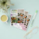 Small business marketing flyer for any profession and business that can showcase the work in photos. Add your logo, specialties, offer, and QR code. On the back, write more text about the business and why your client should pick you! This promotional small business flyer features your logo, a bigger version on the front and a smaller version on the back. You can add four photos of you and your employees or of your work to give your potential customers a taste of what you can offer. Purple and pink details and small social media icons. Add your website and social media handle.