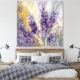 A fluid impasto painting of lavender-inspired floral forms in purple, violet, pink, and white, set against a swirling background of yellow, gray, and white. The marbled texture creates movement and depth, blending organic shapes with dynamic color patterns. This abstract wall art adds vibrancy and elegance to modern interiors.