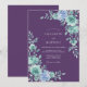 This design features a deep purple background paired with cool-toned floral arrangements. Vibrant mint and light blue roses and hydrangeas are nestled among delicate foliage for a sophisticated botanical look. The striking contrast and moody color palette are ideal for an evening or seasonal winter aesthetic.
