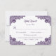 Elegant purple rustic floral wedding RSVP card with meal choices featuring sunflower flowers, delicate floral lace and string lights. Perfect card design to complement your purple rustic country, backyard, garden, or barn wedding party. Matching items available.