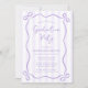 A trendy purple graduation party invitation template, featuring a whimsical doodle bow frame and stripes. Easily add a photo to the back of the invitation. A fun design for a girl grad party!