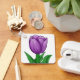 Pretty handpainted purple tulip and green leaves against white background. Purple Monogram on backside with black geometric sqaure. Designed for Aluminum Square style.