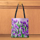 Tote bag with purple tulips, a floral bag to add the beauty of nature’s bloom to your belongings and style.