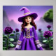 Den här viskfulla poster har en flicka utklädd till en lila häxa som står bland vibrant lila ro, som blandar fantasi med mystiska, fantastiska vibes. Avslutat som en tryckning av blandad mediekonst.