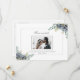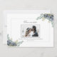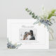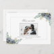 Utformningen har en bukett av eukalyptus greenery och vackra vattendrag med en grått gräns och ett foto av paret som gifta sig. Du kan ändra fotot till eget.