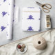 Lilor och vit som slår in papper med en purpurfärgad grodadesign på vitbakgrund. Färgrikt och roligt.