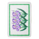 Min original- vattenfärgmålning upprepad i ett mönster och som skrivs ut på en Bathmat som presenterar en purpurfärgad irisblommar, och två spirande fastställda irisblommor i görar grön klippning.