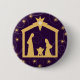 En silhouette av den heliga familjen med stall, Joseph och Mary tittar över bebiset Jesus i mangeren. Guld- stjärnor och virvlar runt surround platsen. Bakgrunden är en majestätisk regal lilafärg. Klicka på skräddarsy som den knäppas att personifiera med text.