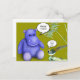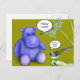 En purpurfärgad påskflodhäst som talar till ett pheasantanseende på en sten. med en glad påsk för gräsgrönt background.with i svart text.