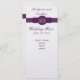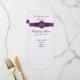 Purpurfärgade bröllopmenykort på silverpapper meny