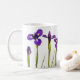 Purpurfärgade Irises på vitbakgrund - blom- Iris Kaffemugg