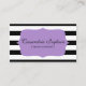 Dessa visitkortar är underbara för själven - använda professioneller för liten affär eller personlig använda. Ta copyrightt på 2009-2015 visitkortar för lilor för randar för sublim brevpapperskönhetkonsulent svartvita