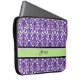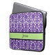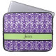 Bärbar datorfodral med roliga och moderna mörka lilor, chartreuse limefruktgrönt, svartvitt blom- damastast vintagemönster. Personifiera detta fodral med ditt egna namn eller annan beställnings- text för att skapa ett riktigt unikt fodral. Kontakta oss för att be en färgändring.