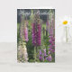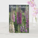 Grattis på födelsedagenkort. Purpurfärgade Foxgloveblommor i en stugaträdgårdSand planlägger något att säga det med blommasamlingen. Den djärva lila blommor i mjukt subtilt skuggar av lilor och rosor. Ett härligt hälsningkort som ska skräddarsy med ditt egna personliga meddelande. Det perfekta kortet för morsan, modern, Gran, mormodern, årsdag, på deras födelsedag eller till något att säga tackar precis dig. Skräddarsy med ditt egna textmeddelande eller personifiera med ditt namn. Också tillgängligt som en affisch.