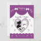 Denna gulliga katt kopplar ihop bröllopinbjudan som presenterar 2 katter, ha på sig brudkatten en purpurfärgad hjärta förser med krage, och ett vitbröllop skyler, och brudgumkatten med en purpurfärgad hjärta förser med krage, och top hat med ett purpurfärgat musikband som omges, genom att flyta purpurfärgade hjärtor som överträffas med en lilafärgadgardin med vit, bugar!