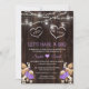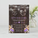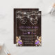 Unik design med "I DO, ME TOO" typografi inuti två hjärtan, masonkrukor med strängljus, vattenfärgade lila orkidéer, torkad pampasgräs, palmkvistar, lunaria, på en gammal lada. Använd verktyget Personlig tillägg för att lägga till din information. Besök gärna mitt Pampasgräs Blommiga Kollektion.