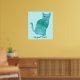 Abstrakt tryckt målning av en sittande katt i pärlblått och pärlgrönt, med Jag är purr-fekt, är tryckt på anpassade affischer. Texten kan enkelt anpassas på mallformuläret.